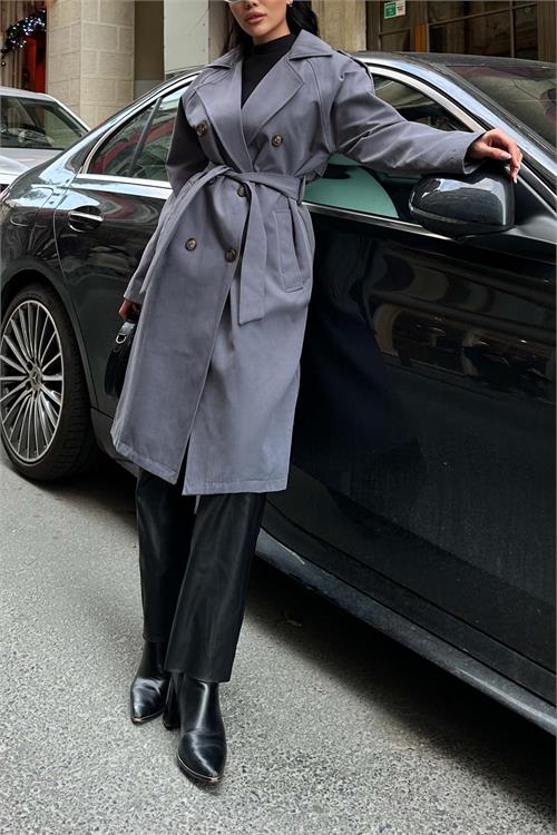 Zamansız tasarımı ile her sezonun vazgeçilmez parçası olan kadın trençkot , modern ve şık bir görünüm sunar. Kuşaklı yapısı sayesinde bele oturarak daha zarif bir siluet oluşturur. Çift düğmeli tasarımı ve klasik yakası ile hem günlük hem de şık kombinlerde rahatlıkla kullanılabilir. Pantolon, elbise ve bot kombinleriyle kolayca tamamlanabilir.