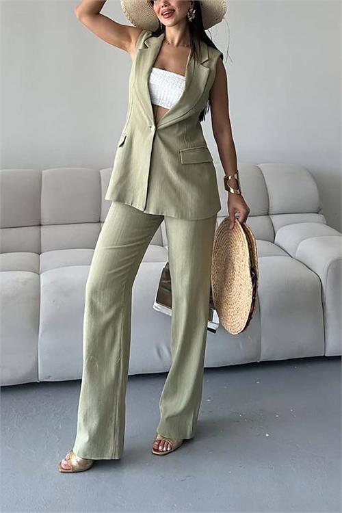 Şık ve modern tasarımıyla öne çıkan bu keten ikili takım, yaz stiline zarif bir dokunuş kazandırır.