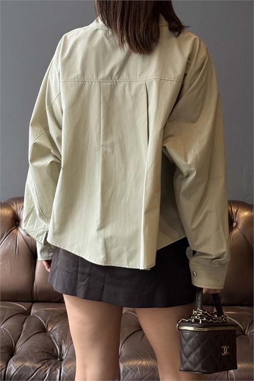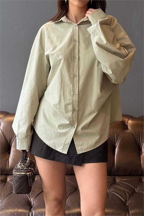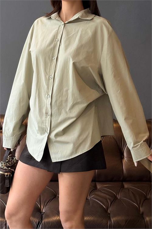 Kadın Haki Oversize Gömlek Düğmeli Uzun Kollu Şık Kesim HSZ059