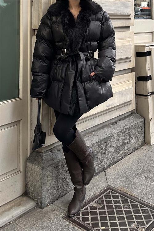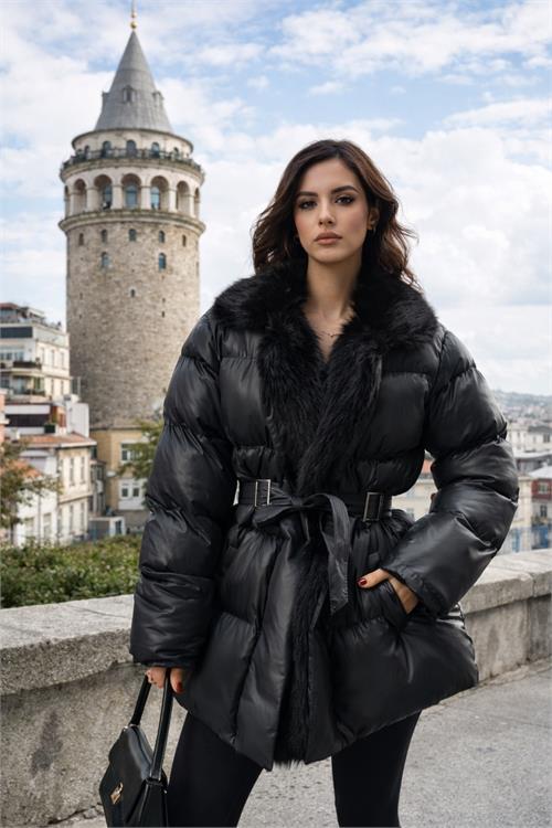 Soğuk kış günlerinde hem şıklığı hem de konforu bir arada sunan kürklü kemerli şişme mont, modern kesimi ve yumuşak dokusuyla dikkat çeker. Bel kısmındaki kemer detayı vücut formunu ortaya çıkarırken şişme yapısı sayesinde sıcak tutar.