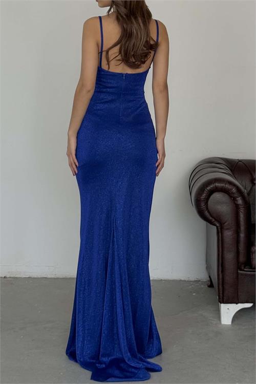 Zarif ve feminen bir siluet sunan bu uzun abiye elbise, simli likrali orme kumasi ile ışıltılı bir gorunum kazandırır. Esnek yapısı sayesinde vucudu nazikce sarar ve gun boyu konfor saglar.
