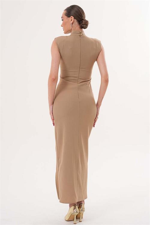 Dik yaka formu, arka sırt fermuar kapaması ve gold ense düğme detayı ile bütünsel olarak premium bir görünüm sunar. Günlük şıklıkta ve özel kombinlerde rahatlıkla tercih edilebilir.