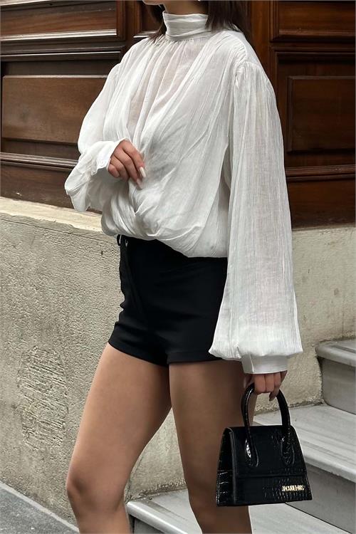 Balıkçı yaka tasarımı ile asil bir duruş kazandıran model, uzun ve hafif hacimli kollarıyla stilinize hareket katar. Hem günlük kombinlerde hem de özel anlarda rahatlıkla tercih edebileceğiniz zamansız bir parçadır.