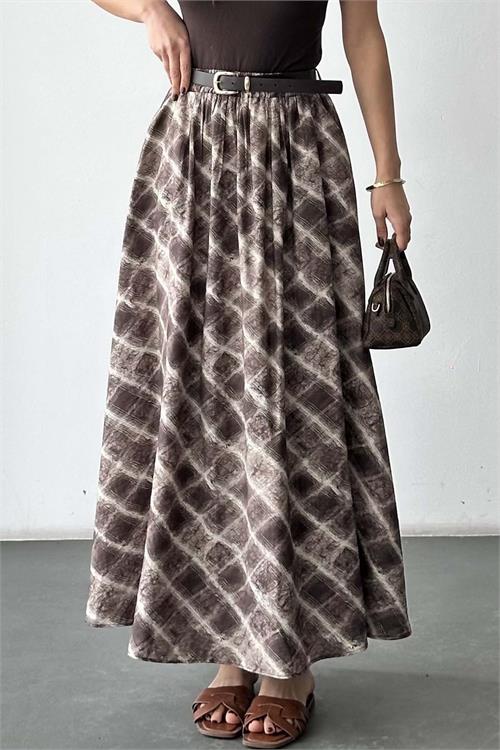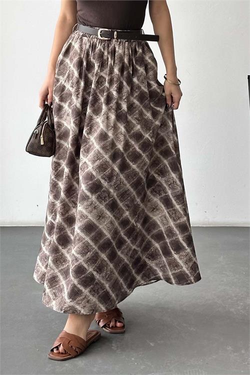 Modern ve akıcı formu ile öne çıkan uzun etek, hem rahat hem de şık bir görünüm sunar.Kare Desenli kumaşı sayesinde dikkat çekici bir stil oluştururken kemerli tasarımı bel hattını vurgulayarak dengeli bir duruş sağlar.