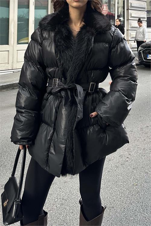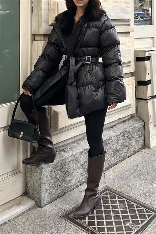 Soğuk kış günlerinde hem şıklığı hem de konforu bir arada sunan kürklü kemerli şişme mont, modern kesimi ve yumuşak dokusuyla dikkat çeker. Bel kısmındaki kemer detayı vücut formunu ortaya çıkarırken şişme yapısı sayesinde sıcak tutar.