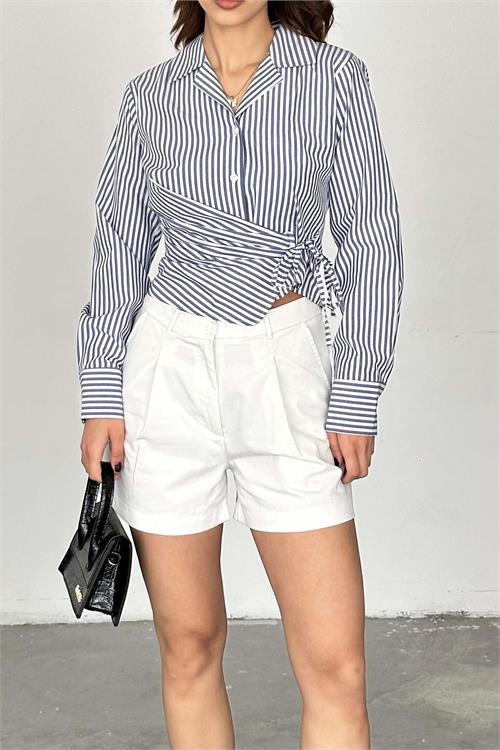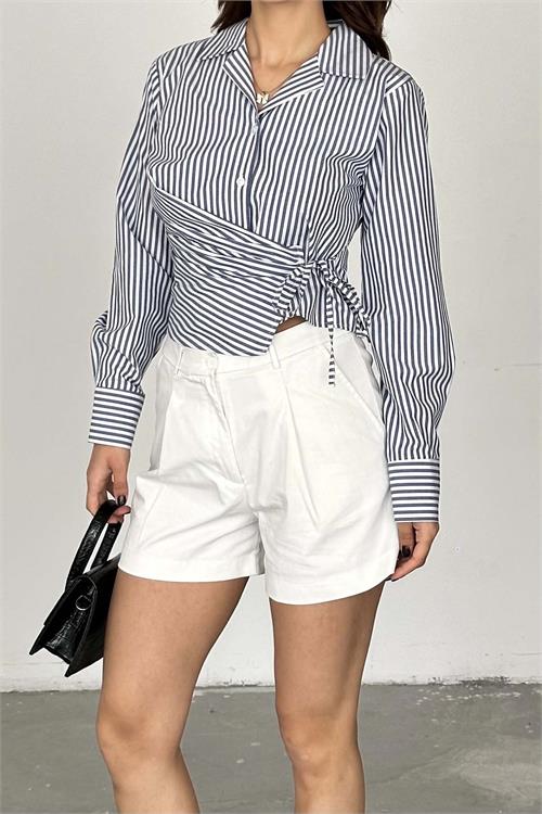 Modern ve zarif tasarımıyla öne çıkan çizgili bağlama detaylı crop gömlek, stil sahibi kombinlerin vazgeçilmez parçalarından biridir. Ön kısmındaki bağlama detayı sayesinde vücuda uyum sağlayan şık bir görünüm sunar. Çizgili deseni klasik gömlek stiline modern bir dokunuş katarken jean, etek veya şort kombinleriyle rahatlıkla kullanılabilir.