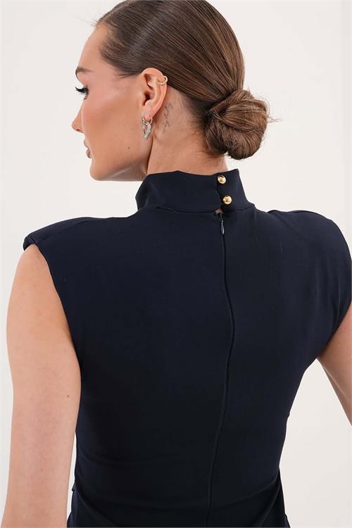 Dik yaka formu, arka sırt fermuar kapaması ve gold ense düğme detayı ile bütünsel olarak premium bir görünüm sunar. Günlük şıklıkta ve özel kombinlerde rahatlıkla tercih edilebilir.