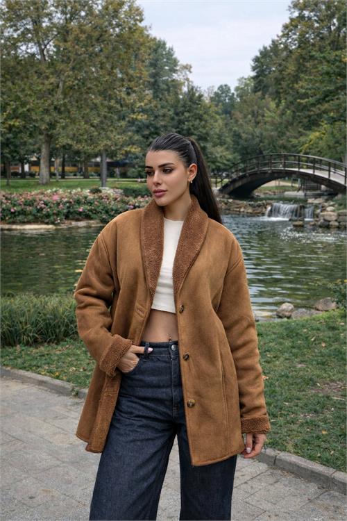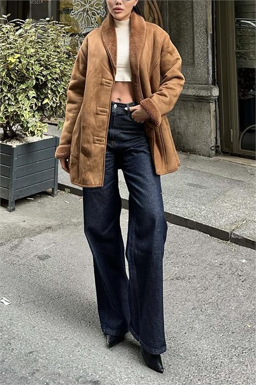 Kış kombinlerinin vazgeçilmez parçalarından biri olan kadın süet kaban, şık ve zamansız tasarımıyla dikkat çeker. Yumuşak süet dokusu dış yüzeyde zarif bir görünüm sunarken iç kısmındaki peluş astar soğuk havalarda ekstra sıcaklık sağlar. Ön düğme kapama detayı ve rahat kesimi sayesinde günlük kombinlerde jean, kazak ve botlarla kolayca tamamlanabilir.
