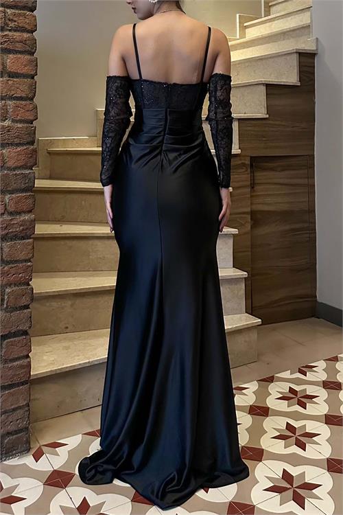 Zarif ve etkileyici bir siluet sunan bu saten abiye elbise, vucudu saran formu ile feminen bir durus kazandirir. Eldiven detayli kol tasarimi elbiseye sofistike ve dikkat cekici bir hava katar.